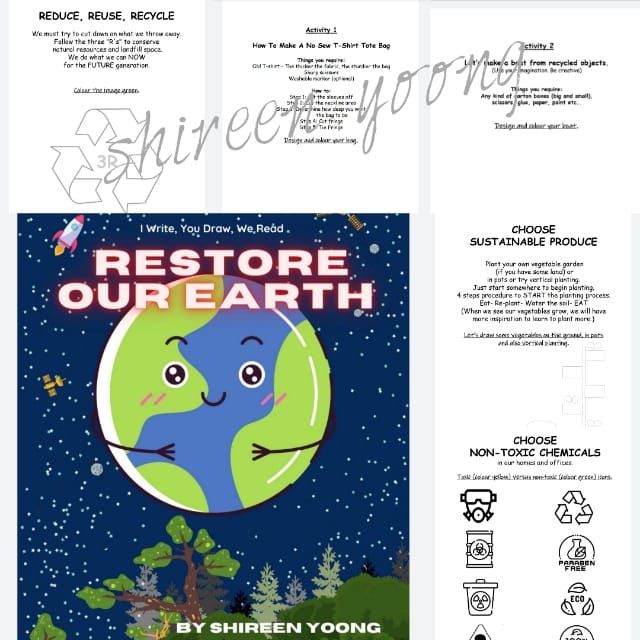 Restore Our Earth from I Write, You Draw, We Read series (age 5-12). Kids learn to GO GREEN through: